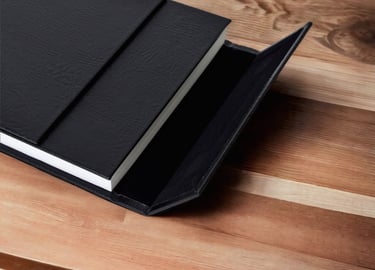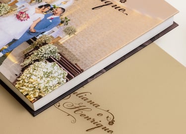 Álbum com aba de fechamento magnético. Capa : Produzida em MDF e revestida com courino, tecido ou camurça. Papel : Escolha entre papel tradicional ou silk para destacar suas fotos. Gramatura : Impressão em papel de alta qualidade com 800 g/m². Abertura : Abertura panorâmica de 180º para maior visibilidade e impacto visual. Laminação das Páginas : Acabamento UV disponível em opções foscas ou brilho, garantindo maior durabilidade e um toque especial às páginas.Valores: