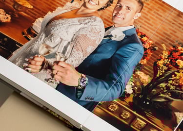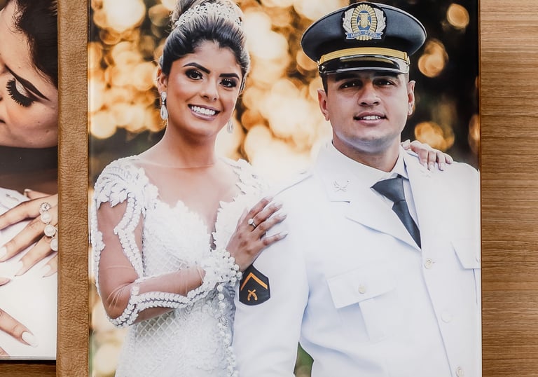 Álbum com Capa Dura Personalizada e Gravação a Laser Capa : Produzida em MDF e revestida com courino, tecido ou camurça, com possibilidade de gravação a laser para personalização única. Envie sua arte ou escolha uma das nossas opções de design. Papel : Papel fotográfico Fujifilm Crystal Archive, ideal para a reprodução de imagens de alta qualidade. Textura : Disponível nas opções Lisa ou Silk, permitindo escolher o toque e o visual que mais combina com suas fotos. Gramatura : Impressão com gramatura de 800 g/m², garantindo páginas robustas e de longa durabilidade. Abertura : Abertura panorâmica de 180º, oferecendo uma visualização completa e imersiva das suas fotos. Laminação das Páginas : Acabamento UV fosco ou brilho, que agrega durabilidade e um acabamento refinado.