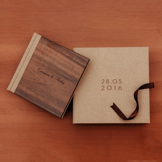 Capa : Frente em madeira MDF, com dorso e verso revestido em couro, tecido ou camurça. A personalização pode ser feita com gravação a laser. Envie sua arte ou escolha uma das nossas opções de design Papel : Papel fotográfico Fujifilm Crystal Archive, ideal para a reprodução de imagens de alta qualidade. Textura : Disponível nas opções Lisa ou Silk, permitindo escolher o toque e o visual que mais combina com suas fotos. Gramatura : Impressão com gramatura de 800 g/m², garantindo páginas robustas e de longa durabilidade. Abertura : Abertura panorâmica de 180º, oferecendo uma visualização completa e imersiva das suas fotos. Laminação das Páginas : Acabamento UV fosco ou brilho, que agrega durabilidade e um acabamento refinado.Páginas: O álbum contém 20 páginas